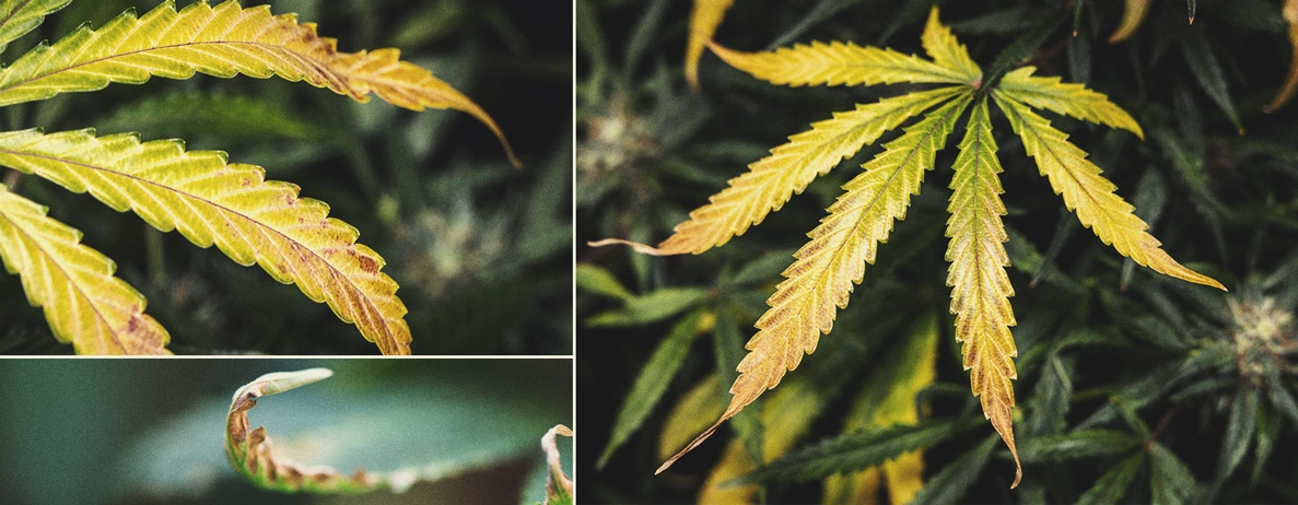 Τα κιτρινισμένα φύλλα είναι συνήθως ένα σημάδι ανεπάρκειας θρεπτικών συστατικών ή προβλήματος που οφείλεται σε κάποιο παθογόνο/παράσιτο κατά τη φάση της βλαστικής ανάπτυξης. Ωστόσο, κατά τη φάση της ανθοφορίας, είναι πολύ φυσιολογικό να κιτρινίσουν τα φύλλα των φυτών της κάνναβης. Αυτό συνήθως ξεκινά από τα φύλλα βεντάλιας (δηλαδή τα μεγάλα, πλατιά φύλλα κάτω από άνθη και τις διακλαδώσεις) και σταδιακά εξαπλώνεται στα μικρότερα φύλλα πιο κοντά στα άνθη, καθώς τα φυτά σας καταναλώνουν θρεπτικά συστατικά που είναι αποθηκευμένα στο παλιό τους φύλλωμα και εστιάζουν όλη τους την ενέργεια στην ανάπτυξη μεγαλύτερων, βαρύτερων ανθών.